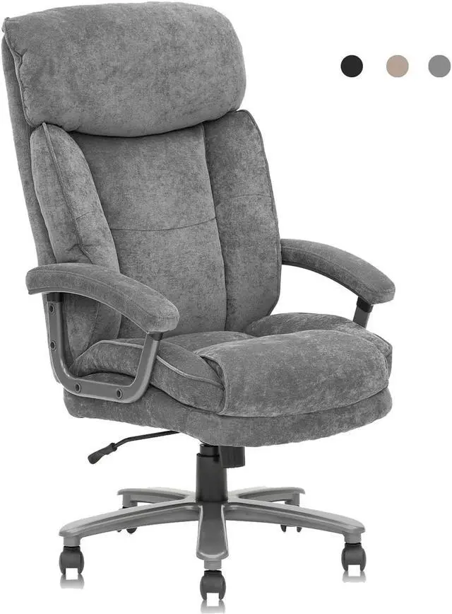 CLATINA Ergonomic Big and Tall Executive Office Chair with Upholstered Swivel 400lbs High Capacity Adjustable Height Thick Padding Headrest and Armrest for Home Office Grey