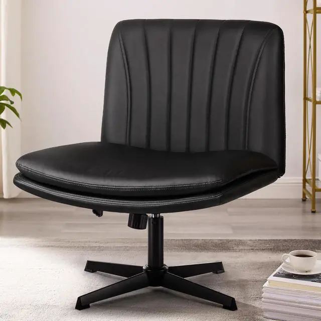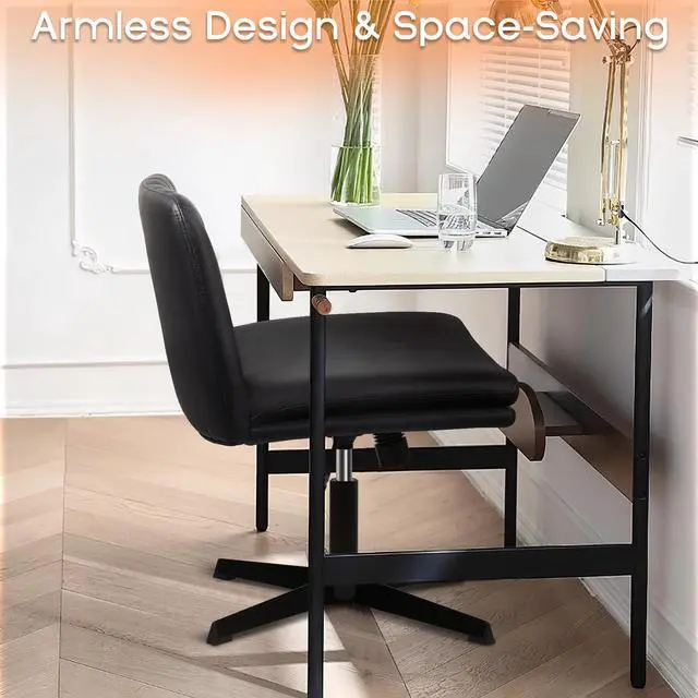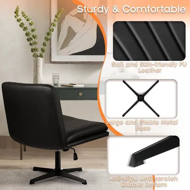 Stylish Desk Chair No WheelsThe unique black lacquered cross aluminium base with non-slip natural rubber feet attached to each support leg to prevent scratching and slipping, perfect for offices, bedrooms, studies, living rooms, dressing tables, parlours and dorm rooms.