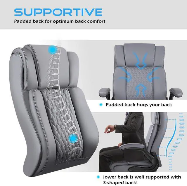 Upgraded and Fully Adjustable: TThe broad range of motion featured in the design of the flip-up armrests allows for use as an office desk chair and a gaming chair. The executive office chair support adjust the backrest angle from 90° to 160° to suit your work and relaxation needs.