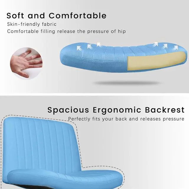 BOSSIN Armless Office Desk Chair No Wheels for Girl Women,Fabric Padded Modern Swivel Vanity Chair,Height Adjustable Wide Seat Computer Task Chair for Home Office,Mid Back Accent Chair