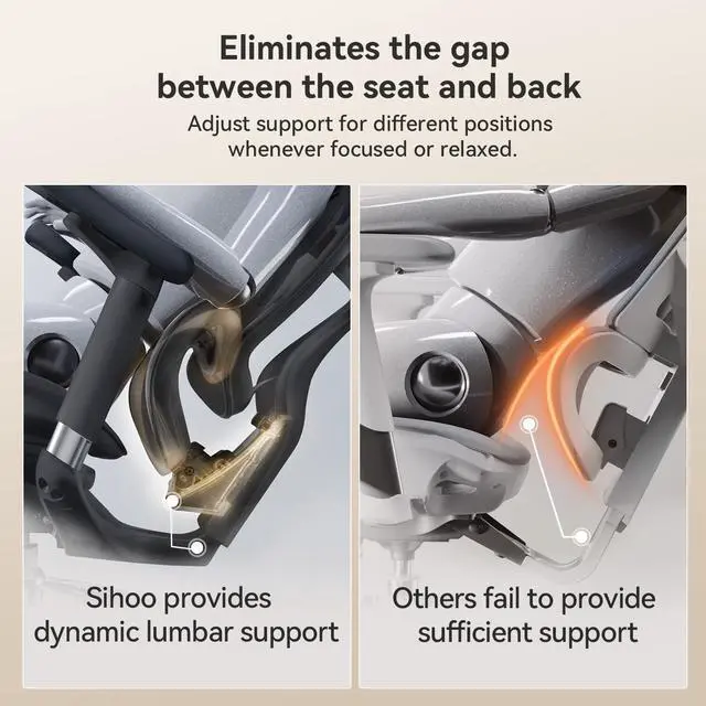 The backrest of this ergonomic office chair is designed with dual backrests, separated backrests, which fit your back curve better, and adaptive lumbar pillow, which can be adjusted automatically with your body movement, providing continuous support for your lumbar area no matter which sitting position you are in.