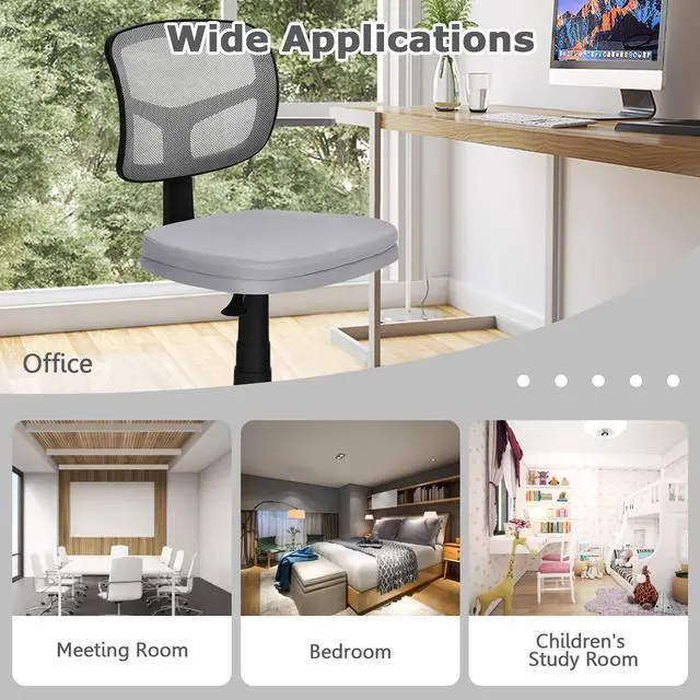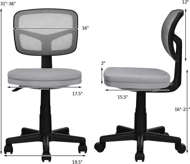 Our office chair is a must-have product for your daily office. Due to the height adjustment function, whether it is for children or office workers, this desk chair can be adjusted to ones desired height. The mesh executive office chair without armrests not only increases the spaciousness of the seat but also saves space. Filled with the high-resilience sponge, this office chair offers a softer and more comfortable feeling. In the meantime, the detachable cushion cover will leaves you no worry about the cleaning work. The smooth rolling wheels make it easy to move the chair anytime and anywhere. Besides, the five-claw structure can increase the bearing capacity up to 250 lbs and enable a sage sitting experience.