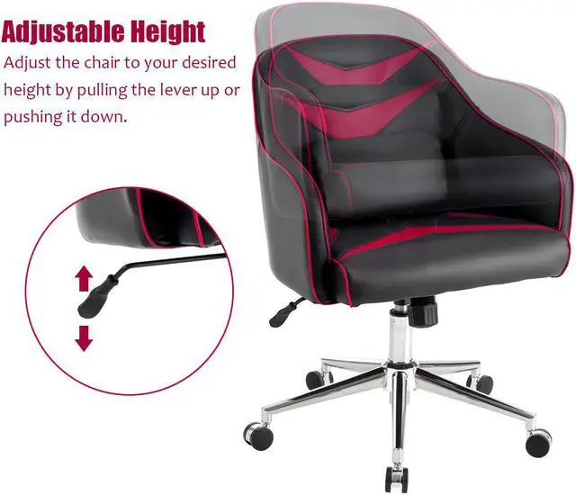 Costway Office Chair Task Desk Swivel Adjustable Height w/ Massage Lumbar Support Red