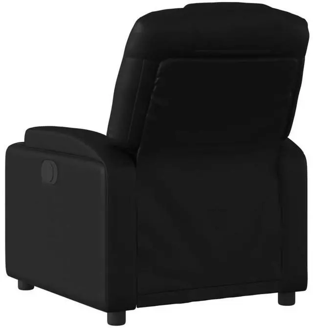 This recliner chair is a perfect blend of style and comfort, designed to enhance any living space. Its sleek, modern silhouette is complemented by plush black faux leather, making it an attractive addition that fits seamlessly into any room decor, from traditional to contemporary settings.
