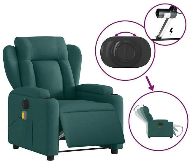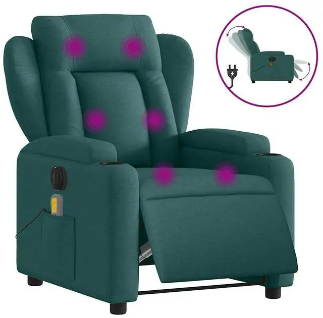This Electric Massage Recliner Chair is the perfect mix of comfort and convenience for your living space, beautifully designed in a rich dark green fabric that adds a lovely vibe to any room. Great for relaxing evenings, this stylish recliner turns your home theater or living room into a personal retreat, letting you unwind while enjoying your favorite shows or books with its soothing massage features.