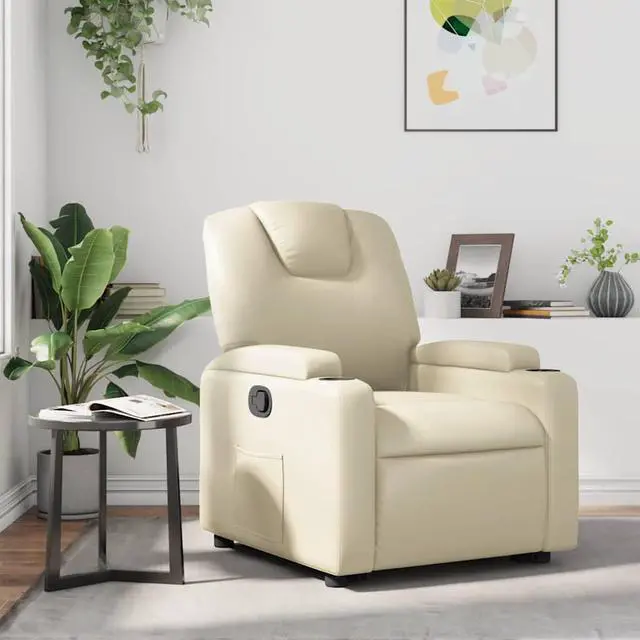 This recliner chair mixes modern style with top-notch comfort, made for anyone wanting to chill out. Its smooth faux leather surface feels soft, and the rich cream color fits right into any living room, bedroom, or home theater, making for a welcoming spot to relax.
