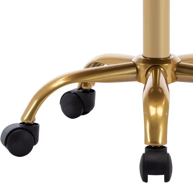 Glamorous and simple, this chair brings a bright touch to your office. Unique design is not only suitable for office, but also spa salon or lab. It is crafted from round back wrapping flared arms and a golden painted metal base. Velvet covering seat makes this chair look more elegant and touch soft and comfortable. Height adjustment and 360 degree swivel is avaliable. Double wheel casters make chair move smoothly.
