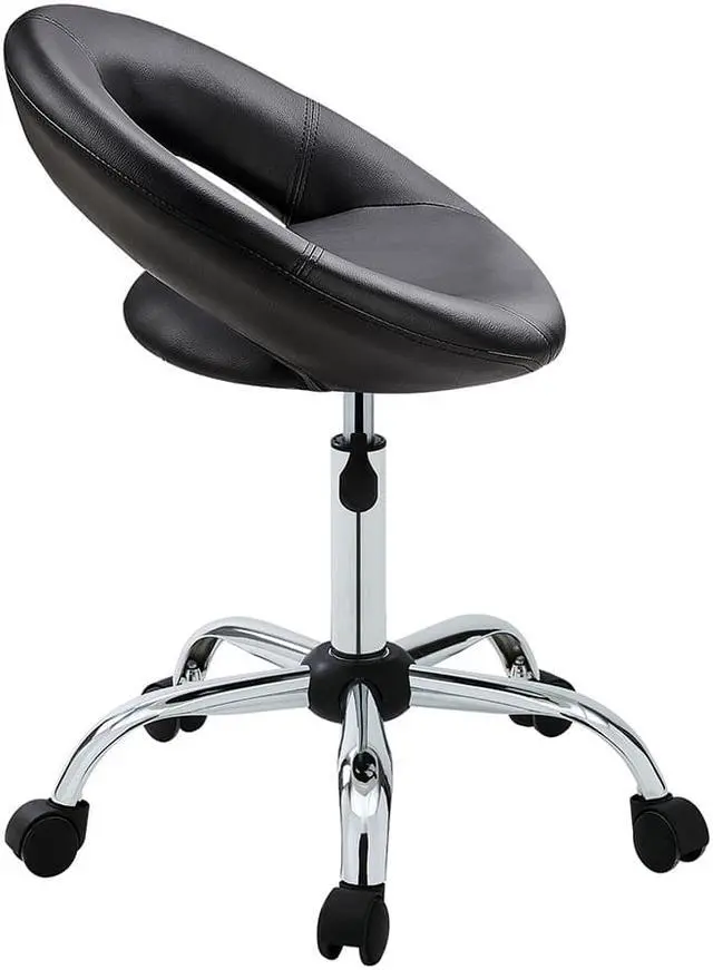 • The polished chrome base with durable dual-caster wheels makes a smooth, easy, and quite movement