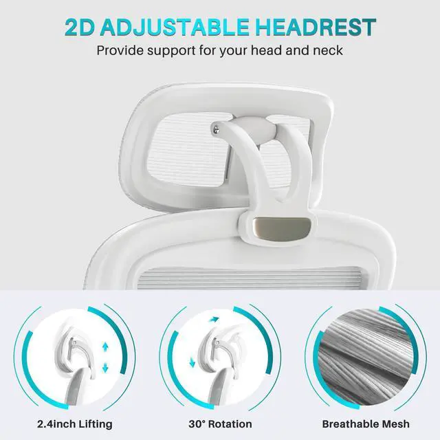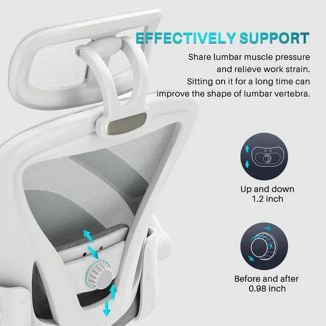 [Ergonomic Design] - 4-way adjustable lumbar support and 2D headrest for ultimate comfort, suitable for long sitting sessions.