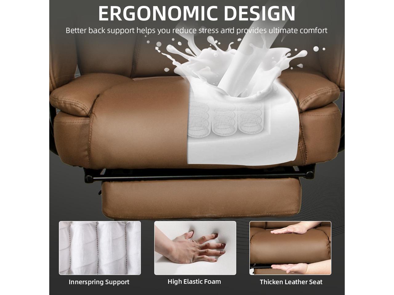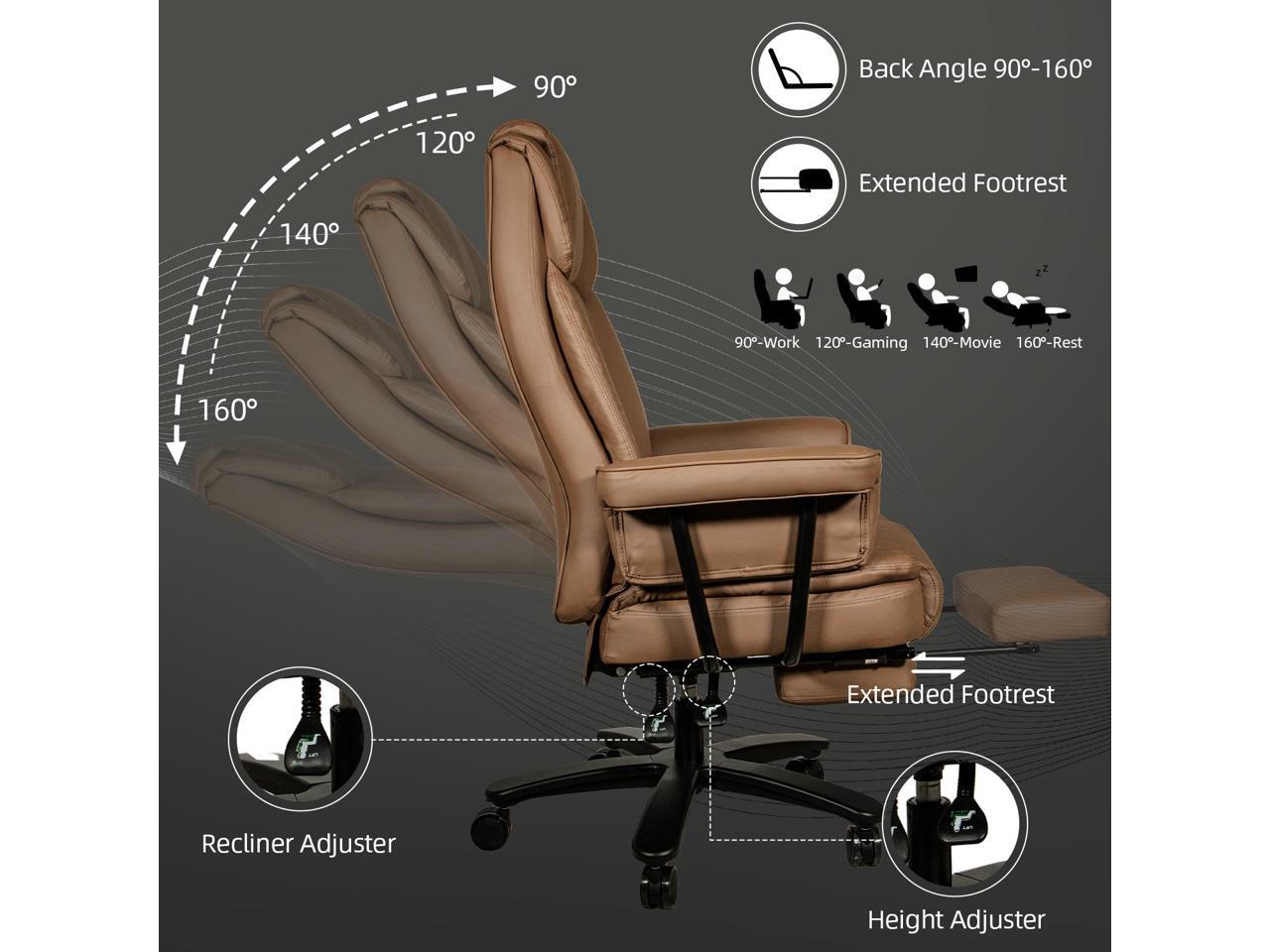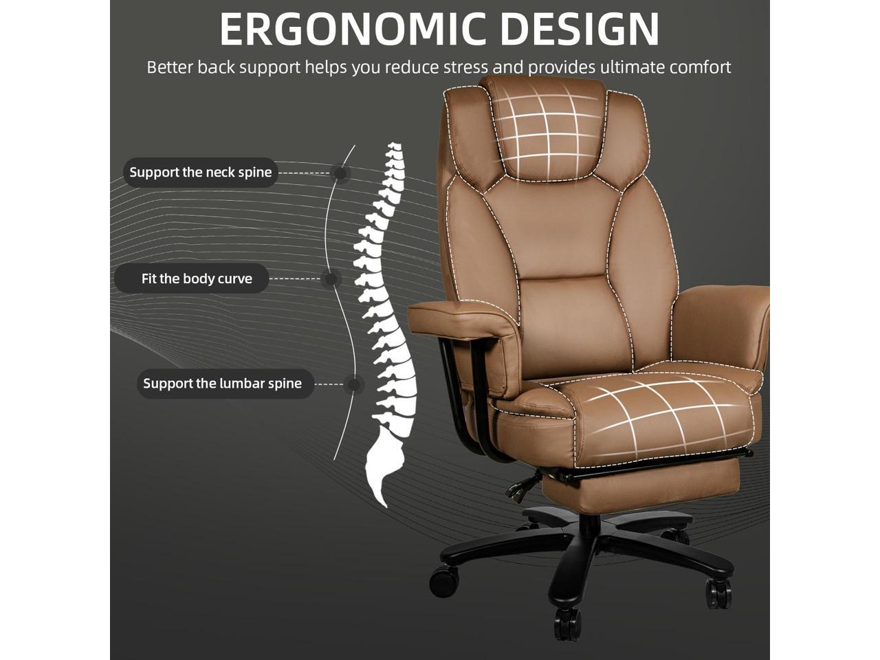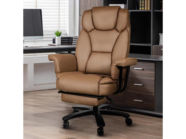 Ninecer Big and Tall Office Chair 400LBS with Wide Seat and Arms, 160° Reclining Office Chair with Footrest, Comfortable Executive Office Desk Chair High Back, Computer Chair Home Office, Brown