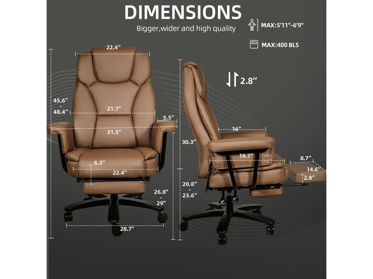 - Big&Tall Office Chair 400LBS Wide SeatOur big and tall chair supports up to 400lbs, offering a wide seat for secure, comfortable seating for everyone.