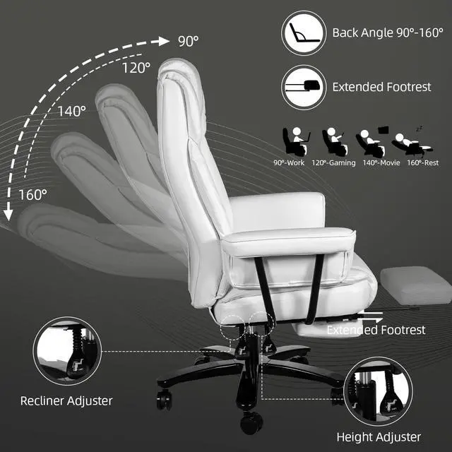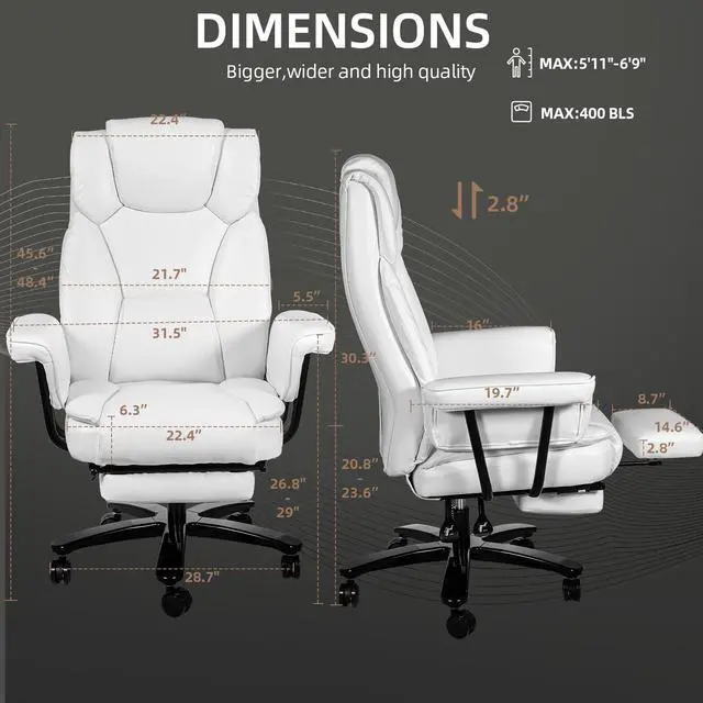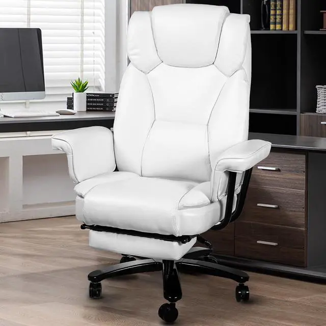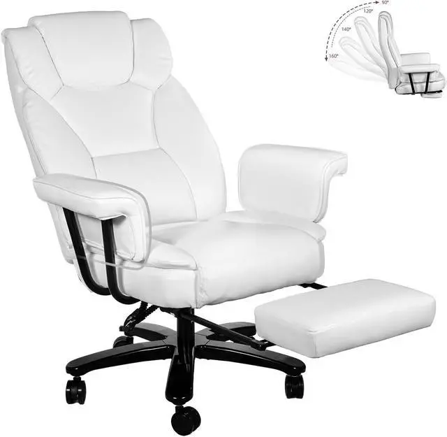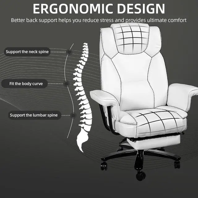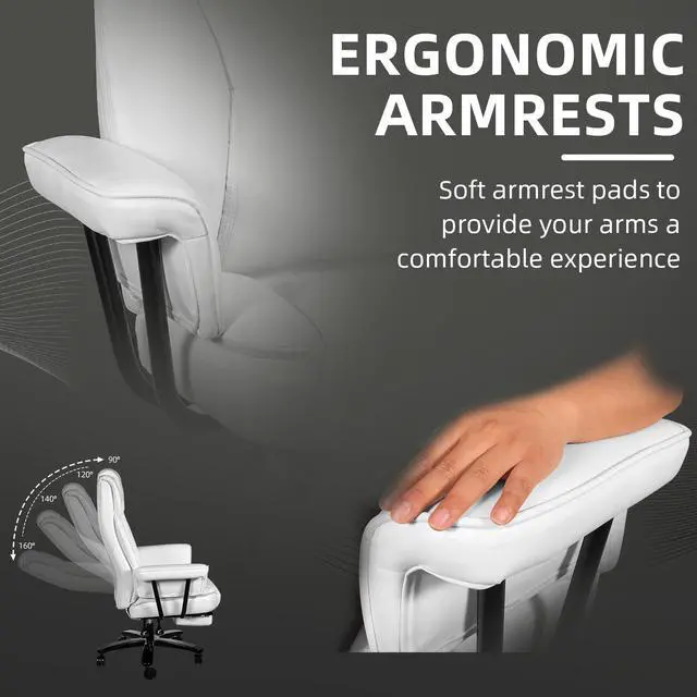 Ninecer Big and Tall Office Chair 400LBS with Wide Seat and Arms, 160° Reclining Office Chair with Footrest, Comfortable Executive Office Desk Chair High Back, Computer Chair Home Office, White