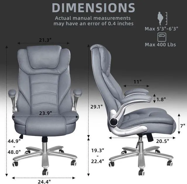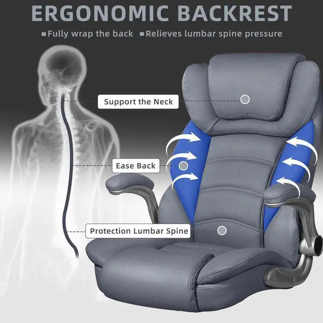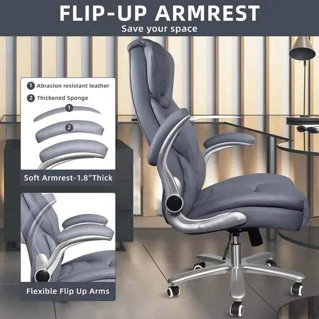 Home & Office Use: High-back design with lumbar support and flip-up arms for flexibility.