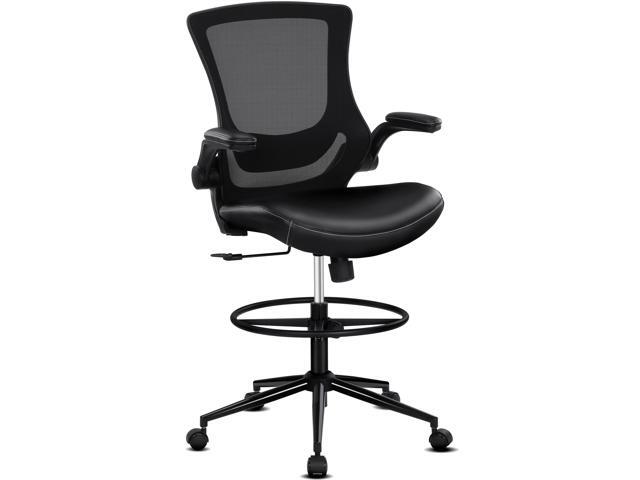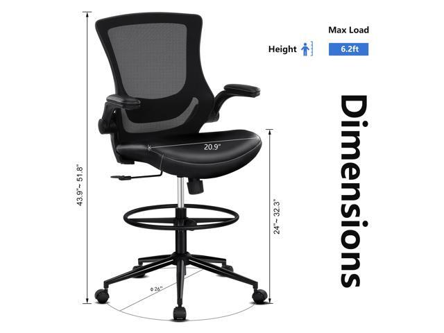 - Ingenious Design: This drafting chair has a waterfall cushion style that fully wraps around the thighs. The high-elasticity natural sponge for a soft and comfortable sitting experience. The backrest is made of mild, breathable mesh to increase air circulation, reduce sultry backs, and not stimulate the skin.