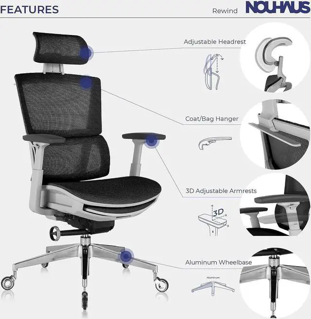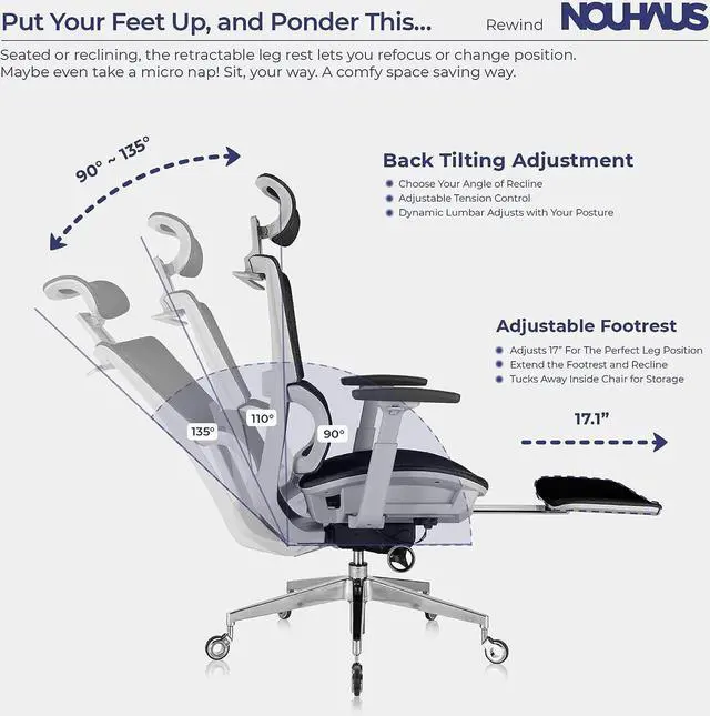 Ergonomic Office Chair with Footrest and Lumbar Support. Swivel Computer Chair, Rolling Home Office Desk Chairs with Wheels, Mesh High Back Task Chair, Comfortable Office Chair (Black)