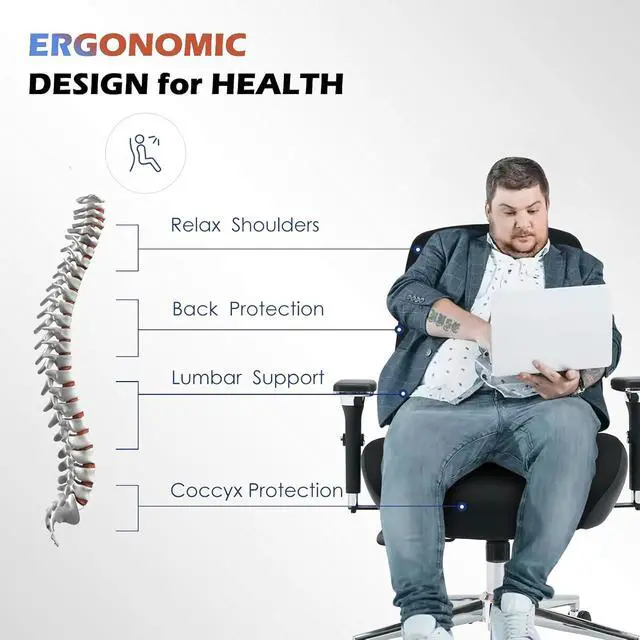 :This plus size office chair is crafted with high-quality breathable fabric that promotes airflow, keeping you cool and comfortable even during long hours of sitting. The fabric is designed to wick away moisture and resist heat buildup, making it perfect for users who need to stay comfortable throughout the day. The materials durability ensures it will maintain its performance over time, offering a cool, breathable seating experience.