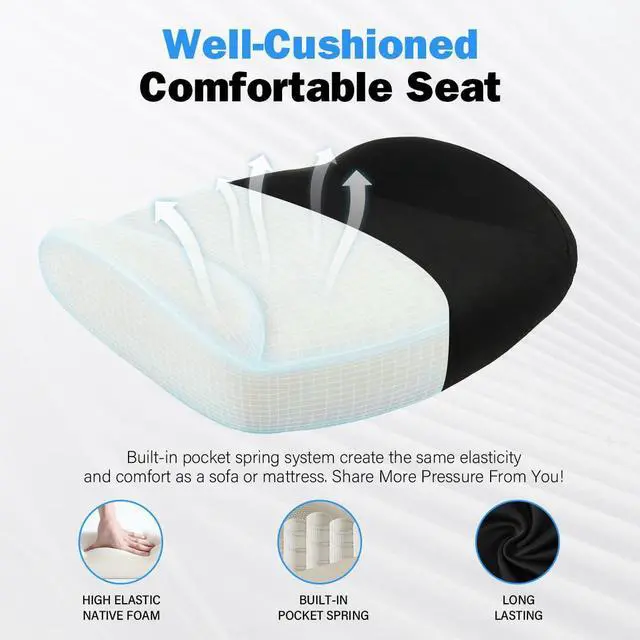 & : The breathable mesh backrest and 5 thick extra-wide seat cushion are soft and resilient, providing comfort and reducing discomfort from prolonged sitting. Filled with high-resilience foam cushion, the seat offers excellent support, while the breathable mesh structure greatly improves the permeability, thus avoiding the feeling of sultry, especially in hot seasons.