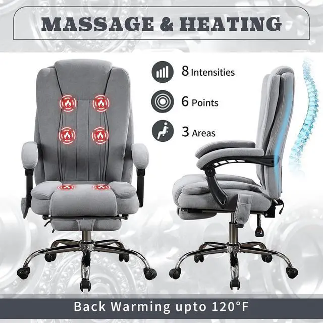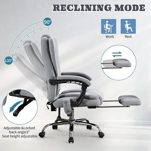 + Unwind in luxury with our premium reclining office chair, featuring 4 adjustable vibration intensities and 8 massage modes for personalized relaxation. Target sore muscles with customizable deep-tissue or gentle massage options, while the built-in heating function improves circulation and melts away tensionkeeping you cozy and focused all day.