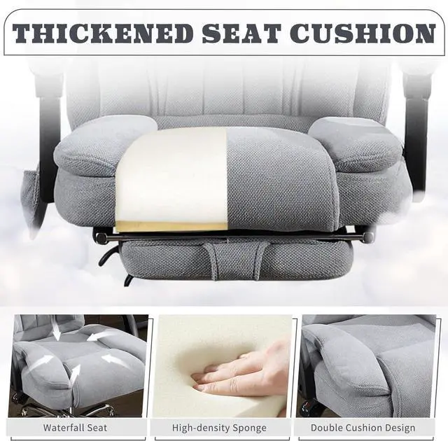The seat cushion is designed with high-density sponge material, offering a soft yet supportive feel for long hours of sitting. The double cushion structure combines a soft outer layer with a firm inner core, providing the perfect balance of comfort and support. The chair helps reduce pressure on your thighs and legs, promoting better circulation and preventing discomfort during extended sitting sessions.