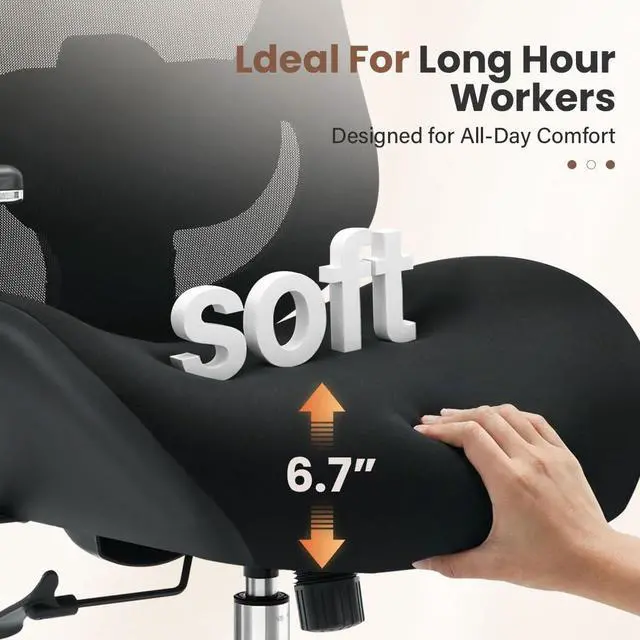 - :Long sitting hurts? This plus-size wide-seat office chair features a spacious U-shaped cushion (19.7"D x 23.6"W, 6.7" thick) that fits your body's natural curves. High-quality springs inside help distribute weight evenly, relieving pressure from long hours of sitting. Whether you're in meetings or focused on tasks, this comfortable office chair keeps you supported and relaxed all day. It's more than a chairit's comfort you can count on.