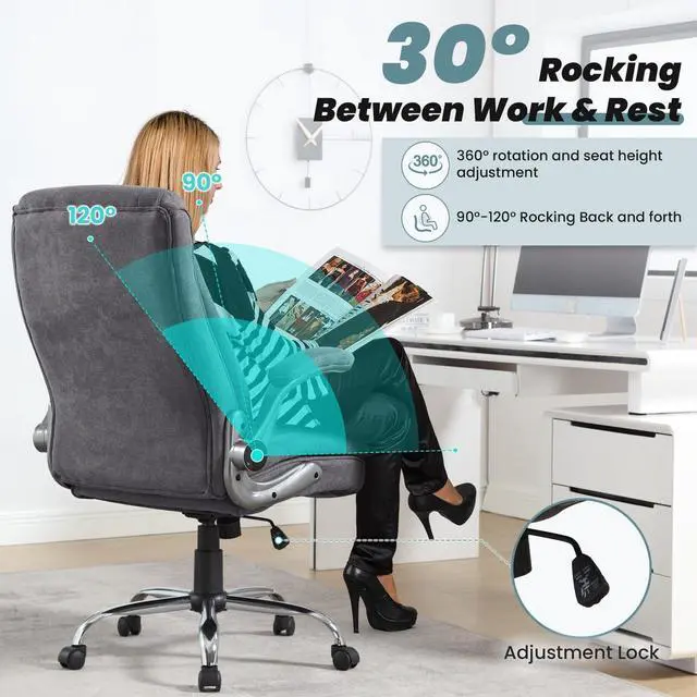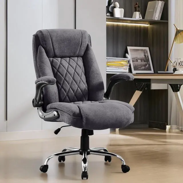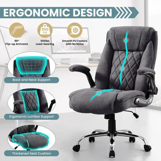 Big and Tall Office Chair 500lbs Heavy Duty Executive Fabric Office Chair with Adjustable Height, Flip-Up Armrests, Wide and Thick Seat Cushion, Comfy Chair for Heavy People, Ideal for Office Work
