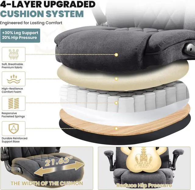 Ideal for Heavy People and Office Use With a 21.65 wide seat, this executive office chair is designed for maximum comfort and support, making it perfect for both home offices and professional work environments. The ergonomic design ensures long-lasting comfort for heavy people. Additionally, the chair features a 120° tilt angle, allowing for a comfortable recline when you need a break.