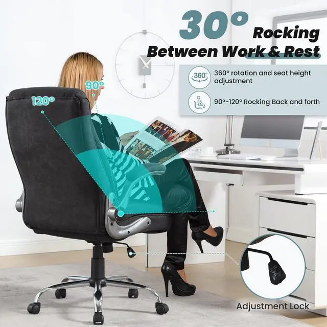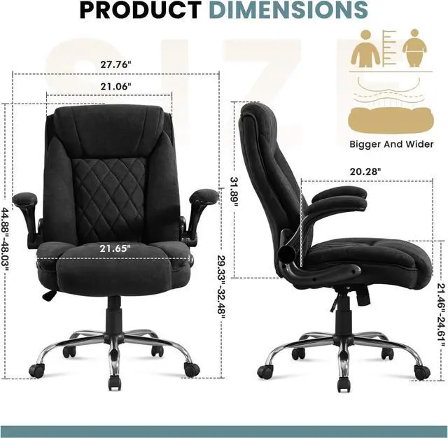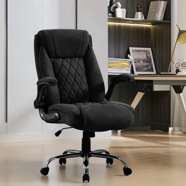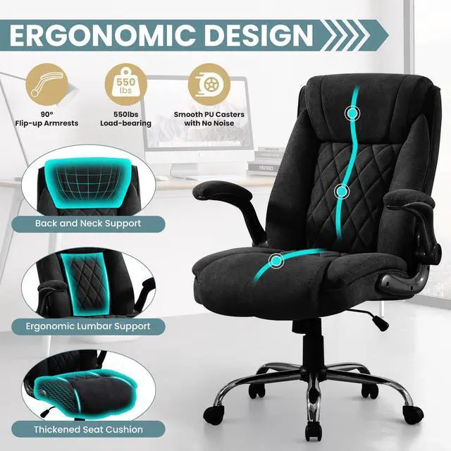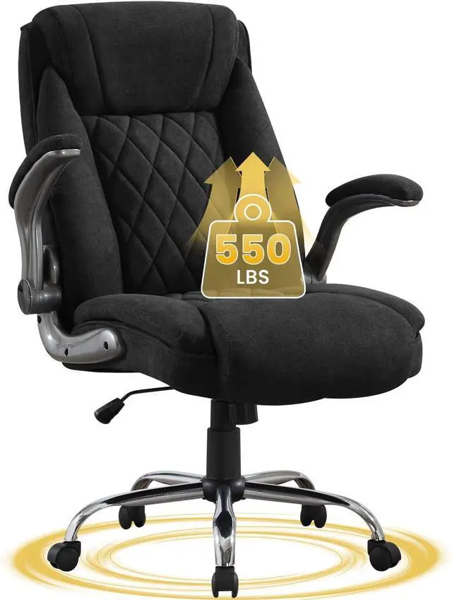 Big and Tall Office Chair 500lbs Heavy Duty Executive Fabric Office Chair with Adjustable Height, Flip-Up Armrests, Wide and Thick Seat Cushion, Comfy Chair for Heavy People, Ideal for Office Work