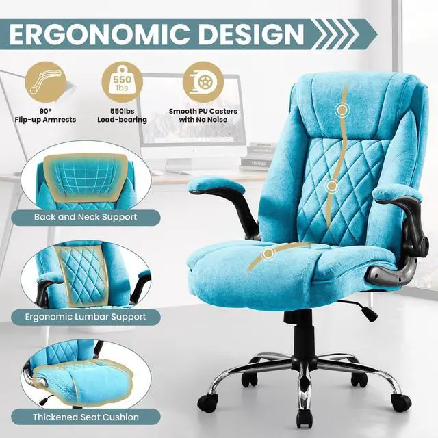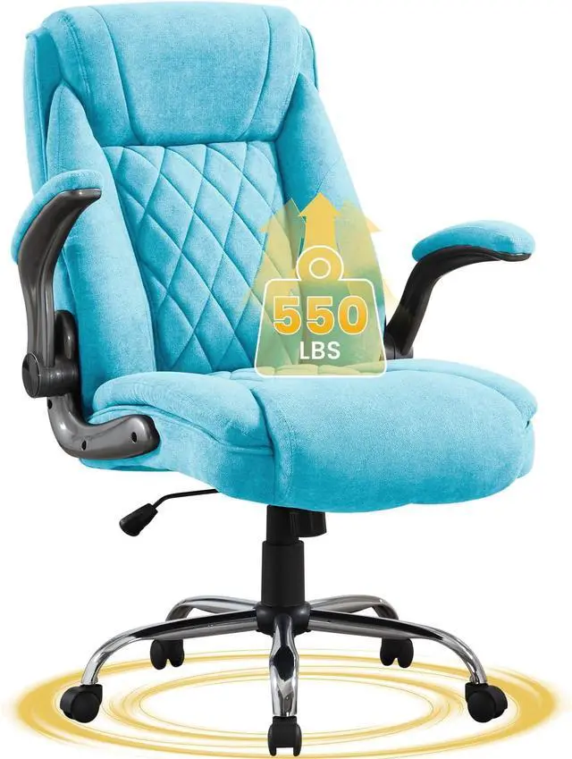Big and Tall Office Chair 500lbs Heavy Duty Executive Fabric Office Chair with Adjustable Height, Flip-Up Armrests, Wide and Thick Seat Cushion, Comfy Chair for Heavy People, Ideal for Office Work