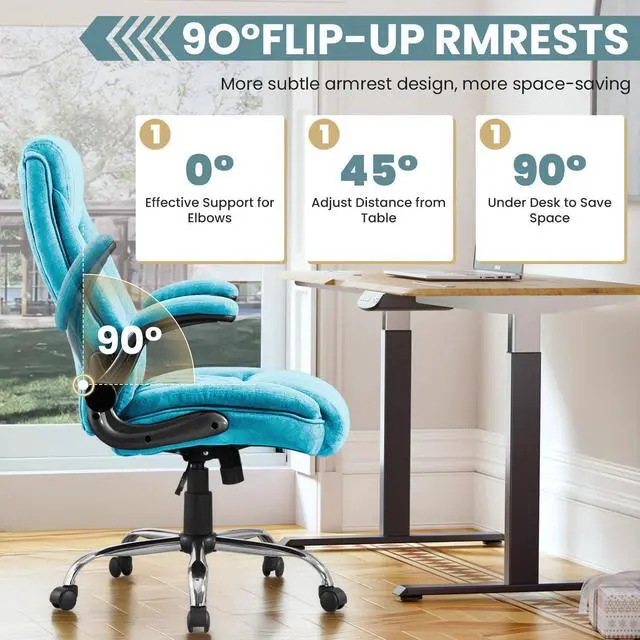 Adjustable Flip-Up Armrests and Ergonomic Features Equipped with adjustable flip-up armrests, this chair can be tailored to your comfort level. The armrests can be flipped up to save space when not in use, making it easy to fit into any office setting. The ergonomic fabric seat ensures excellent lumbar support, reducing discomfort and promoting healthy posture during long sitting periods.