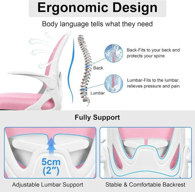 Ergonomic office chair:This ergonomic chair has a curved backrest, which perfectly fits your body curve. There is an adjustable lumbar support in your back, which is designed to protect your spine and relieve back and spinal pain during long-term work. The design of cushion edge can relieve pressure and promote blood flow in your legs.