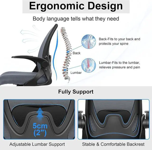 Ergonomic office chair:This ergonomic chair has a curved backrest, which perfectly fits your body curve. There is an adjustable lumbar support in your back, which is designed to protect your spine and relieve back and spinal pain during long-term work. The design of cushion edge can relieve pressure and promote blood flow in your legs.