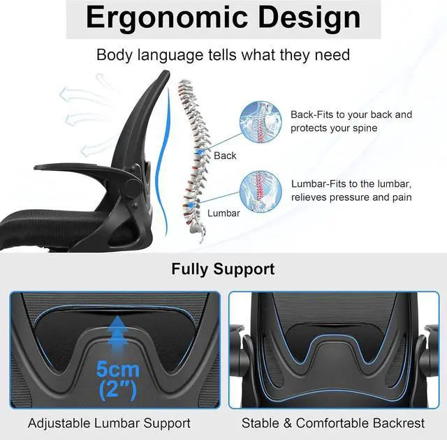 Ergonomic office chair:This ergonomic chair has a curved backrest, which perfectly fits your body curve. There is an adjustable lumbar support in your back, which is designed to protect your spine and relieve back and spinal pain during long-term work. The design of cushion edge can relieve pressure and promote blood flow in your legs.