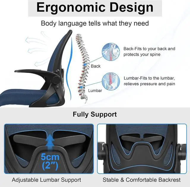 Ergonomic office chair:This ergonomic chair has a curved backrest, which perfectly fits your body curve. There is an adjustable lumbar support in your back, which is designed to protect your spine and relieve back and spinal pain during long-term work. The design of cushion edge can relieve pressure and promote blood flow in your legs.
