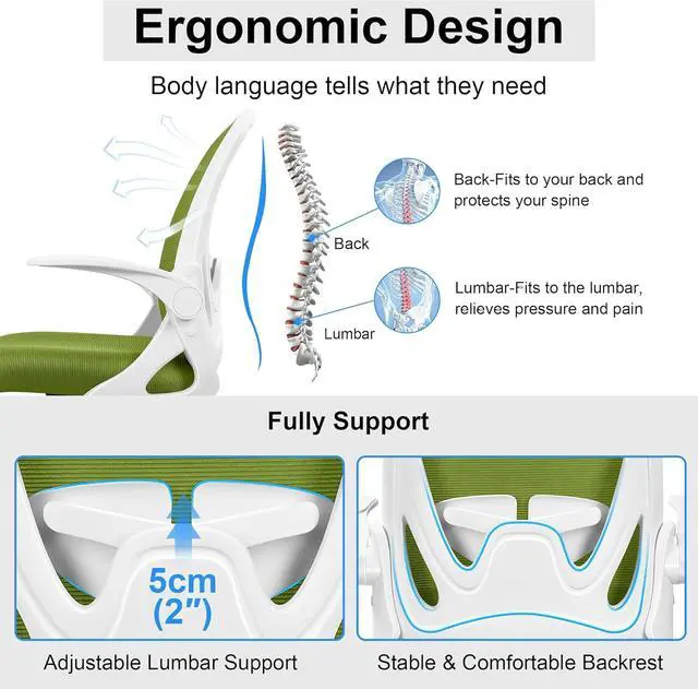 Ergonomic office chair:This ergonomic chair has a curved backrest, which perfectly fits your body curve. There is an adjustable lumbar support in your back, which is designed to protect your spine and relieve back and spinal pain during long-term work. The design of cushion edge can relieve pressure and promote blood flow in your legs.