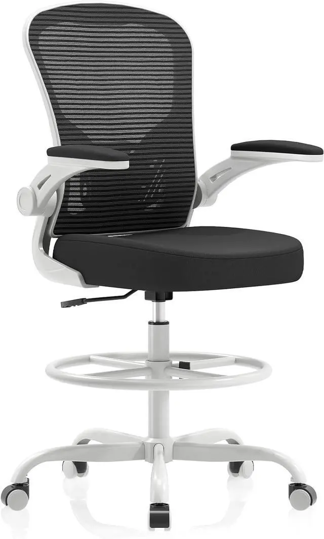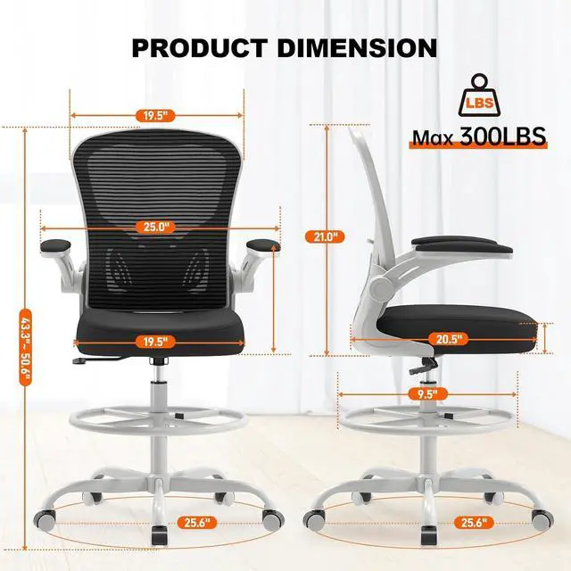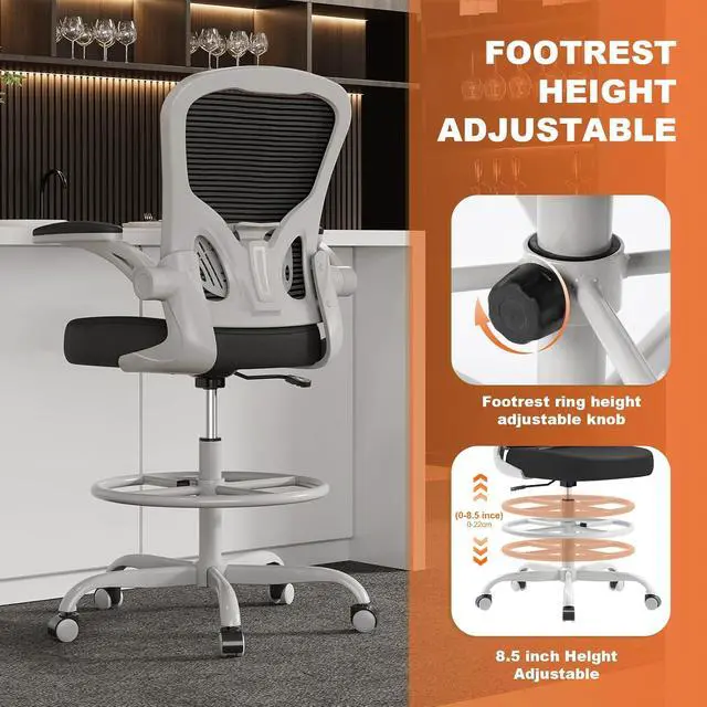 Height Adjustable Comfort:Featuring adjustable seat height (Max 9 in), flip-up armrests, and a repositionable footrest, this tall office chair offers precise customization for both drafting tasks and everyday office use.