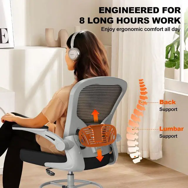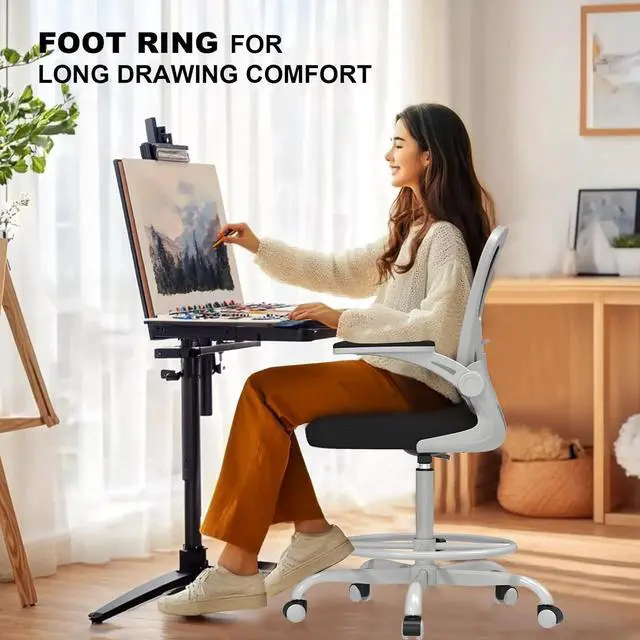 Ergonomic Drafting Chair:The ergonomic design adapts seamlessly to high drafting tables and standard office desks. The adjustable lumbar support benefits designers, architects, engineers, and office professionals by reducing fatigue over long work sessions.