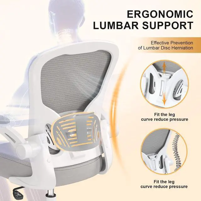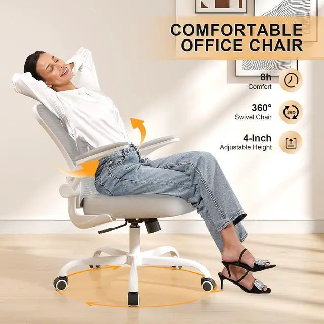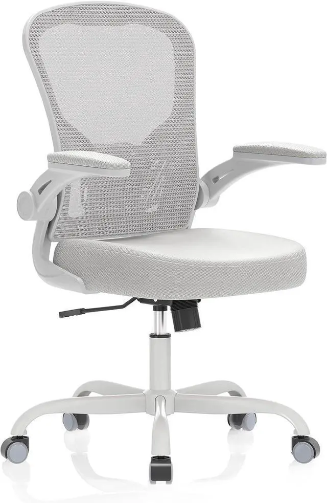 SPACE-SAVING DESIGN WITH FLIP-UP ARMS: Easily tuck the chair under your desk with 90° flip-up armrestsideal for small spaces. The padded arms are made of high-density foam wrapped in breathable mesh, offering a soft, supportive feel for all-day use.
