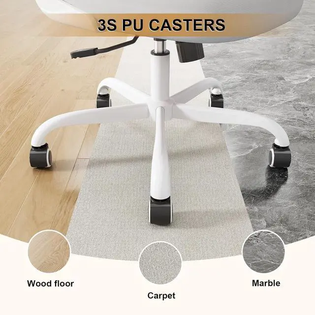 360 DEGREE MOVEMENT AND STABILITY: The task chair uses smooth casters that can swivel horizontally 360° without resistance,low noise, so it won't hurt the floor while moving. It also moves smoothly on tile, wood, carpet and other floors