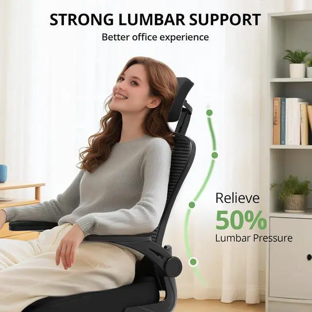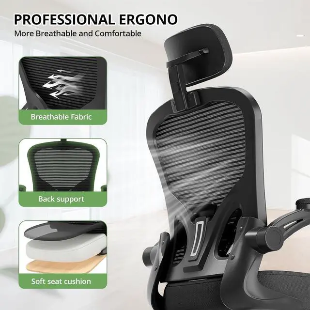 Office Chair Ergonomic Desk Chair, 330LBS Capacity, High Back Computer Chair for Long Hours Comfortable, Rolling Swivel Executive Task Chair for Home Office with Flip-up Armrests, Black