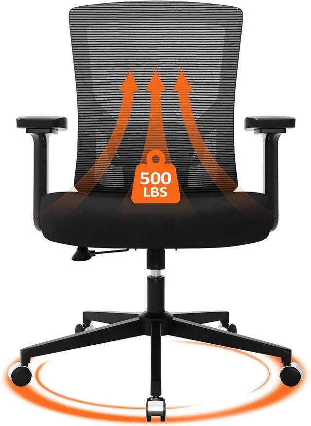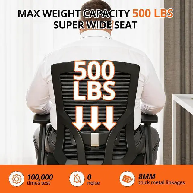 500 lbs Big and Tall Office Chair, Heavy Duty Mesh Desk Chairs with Comfort Spring-Supported Extra-Wide Seat Cushion, 3D Armrests, Ergonomic Breathable Computer Chair for Heavy People