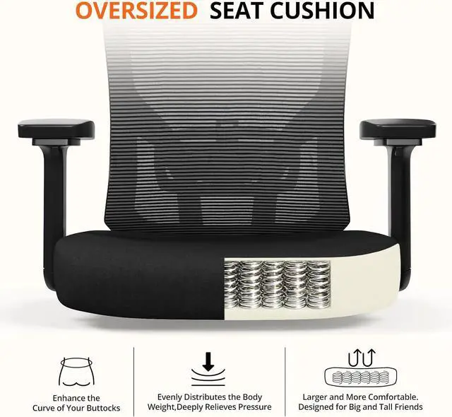 EXTRA WIDE SEAT FOR ALL-DAY COMFORT:With an oversized seat design, this wide seat desk chair offers more room to sit comfortably without restriction. Perfect as an XL office chair or large computer chair for big size who need space and stability.
