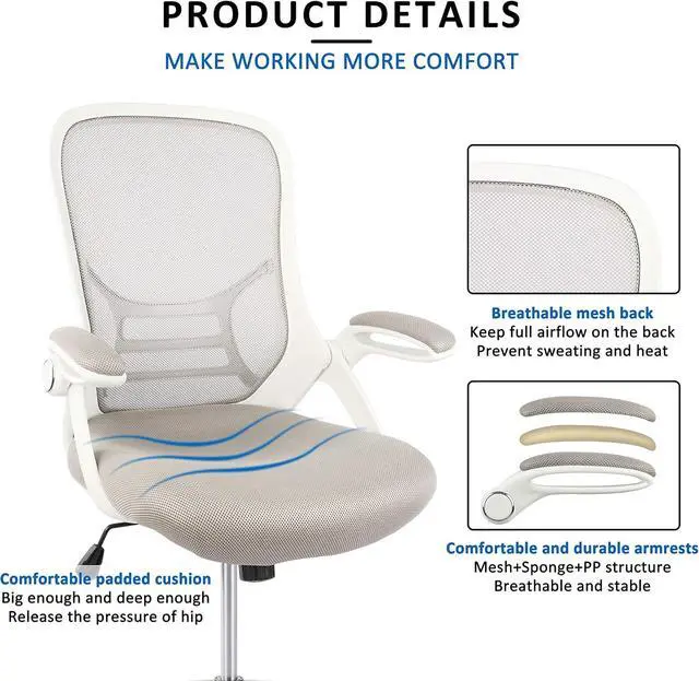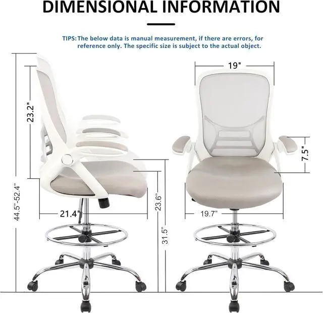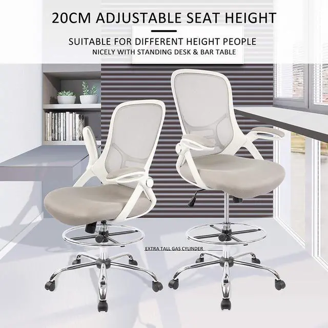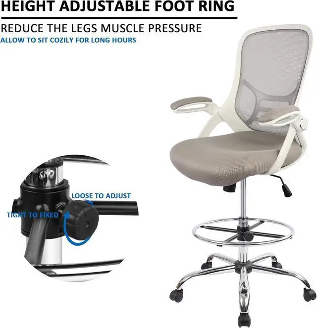 Flip-up ArmsContoured padded arm pads are easy to get cozy, take pressure off your shoulders and neck; Flip up arms design makes your body closer to the desk, ensuring a good sitting posture. Let this ergonomic, high-back drafting chair bring your workday to new heights