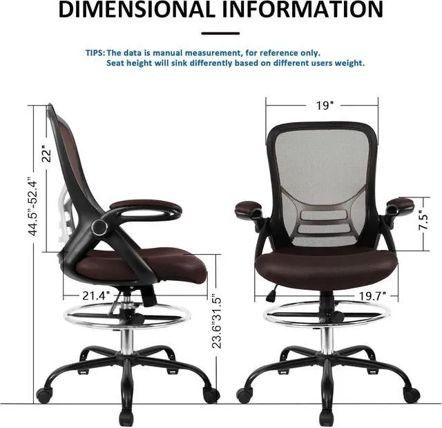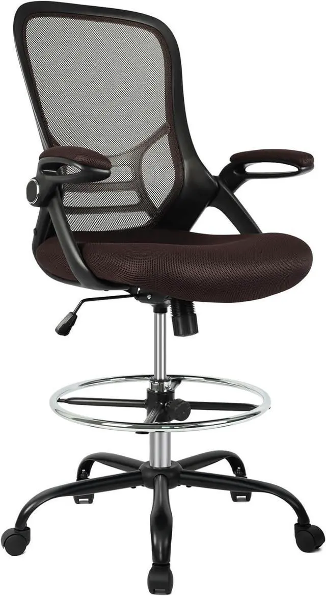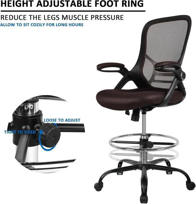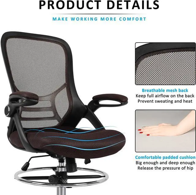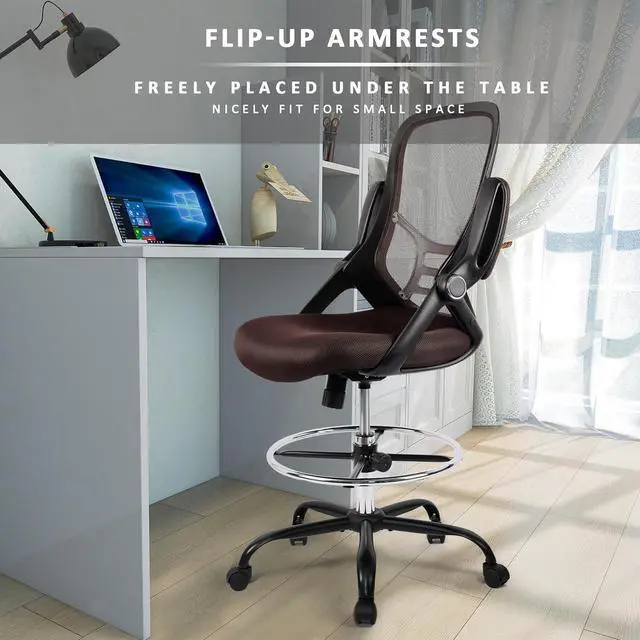 Flip-up ArmsContoured padded arm pads are easy to get cozy, take pressure off your shoulders and neck; Flip up arms design makes your body closer to the desk, ensuring a good sitting posture. Let this ergonomic, high-back drafting chair bring your workday to new heights