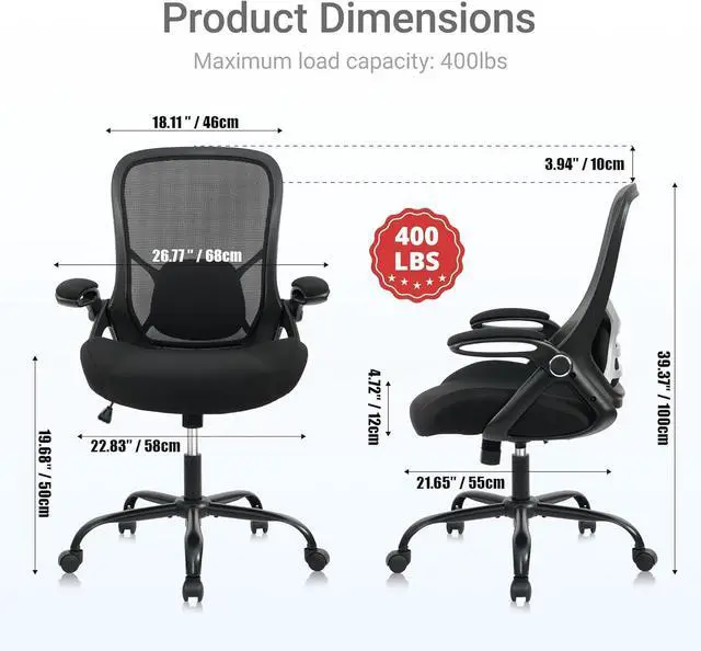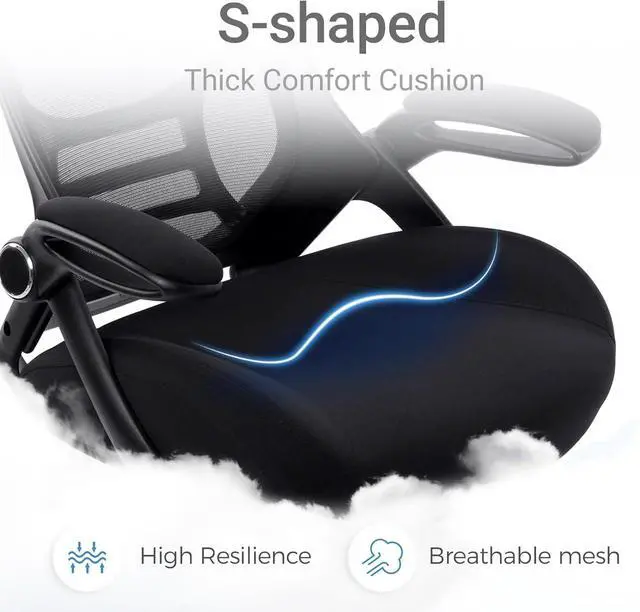 Adjustable Office ChairOur ergonomic office chair, designed to provide comprehensive assistance for your head, back, hips, and arms. Tailored lumbar support ensures your comfort and well-being. Suitable for people of about 5'5" to 6'2". Easily adjust seat height, backrest, and flip-up arms to cater to diverse needs, offering comfortable support during extended periods of sitting