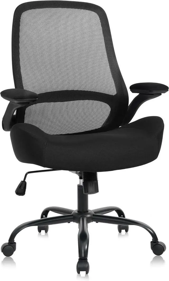 HYLONE Big and Tall Office Chair, Heavy Duty Ergonomic Desk Chair with Adjustable Armrests, 5" Thickened Seat Home Office Computer Chairs for Long Hours Mesh Executive Chair(Black)