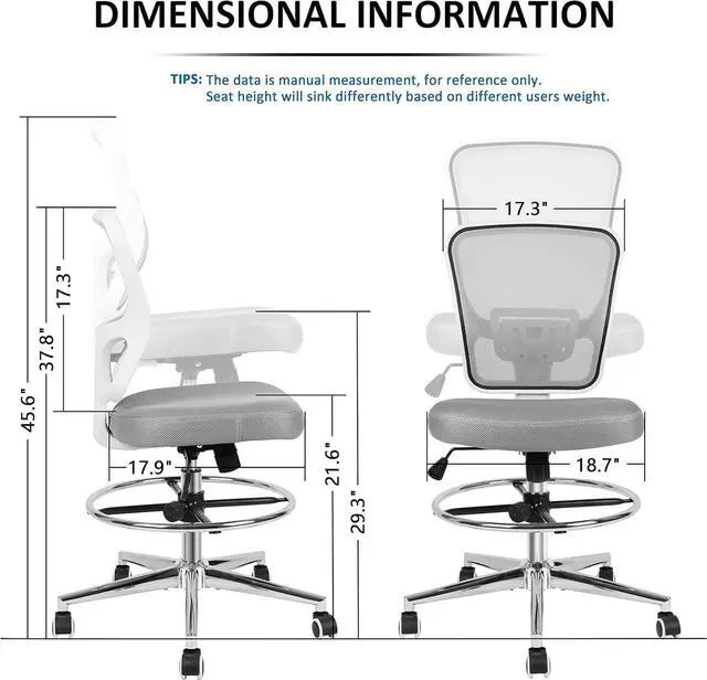 Comfortable Standing Desk ChairThe ergonomic designed back of the tall office chair can fit your body curve well to provides full back support. Adjustable foot ring can keep your feet in a comfortable position to reduce the pressure of your legs.