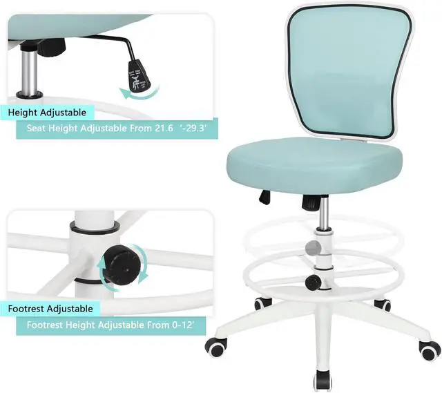 • Space Saving Armless mesh drafting chair allows your body closer to the desk while in use, while not in use you can easily slip the high desk chair under the desk for space saving. Perfectly choice for work, home or other small space.