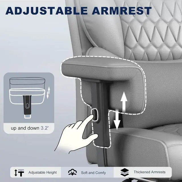 Height-Adjustable Armrests for Customized Posture : The armrests can be effortlessly adjusted up and down to match your preferred sitting position, whether youre typing at a desk, leaning back to rest, or gaming. This flexibility reduces shoulder and arm strain, ensuring optimal comfort for users of different heights and postures.
