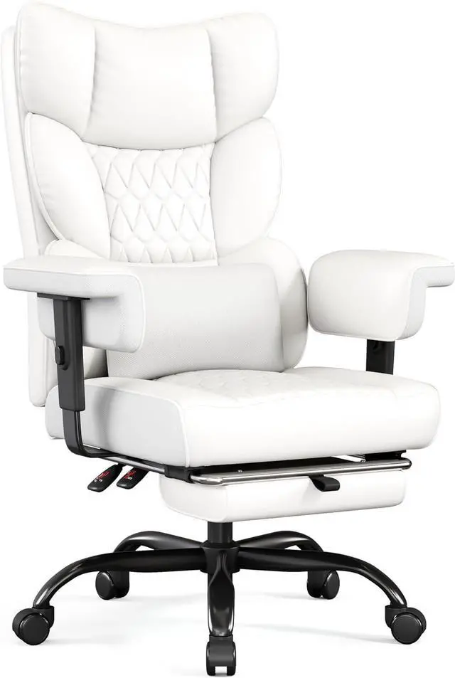 Misolant Big and Tall Office Chair with Footrest, High Back Executive Desk Chair with Adjustable Lift Armrest, 155°Recline,Lumbar Support Pillow, Faux Leather Gaming Chairs for Home or Office White