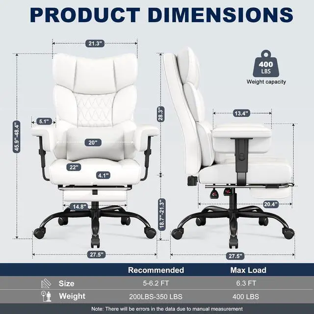 High quality and easy installation: Our office chairs have passed the US BIFMA test, and gas rod that has been certified by SGS, ensuring they are safe and strong to use. Each leather chair comes with a detailed manual, so you can easily understand the installation process. It will only take about 30 minutes to install.